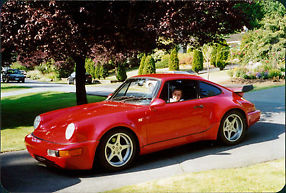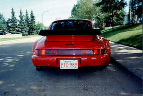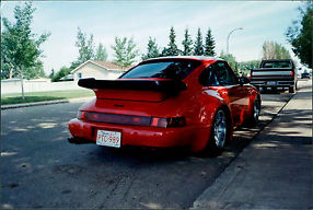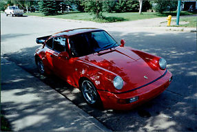 If you are looking for a car with attitude this is it.Striking Pearl Red .1971 911E Turbo with 94 911 CZ Turbo Wide Body including factory steel fenders and factory Whale Tail. The 17" ( 8,5" front, 10" Rear) with lowered suspension completes the look. The 3.2 Litre big bore six with twin Webbers on torque tubes,ported and polished heads, custom headers and 2 1/2" Super Sprint exhaust makes this a go machine. The Weltmeister short shift kit on the 1985 Carrera 5 Spd transmission along with high performance light weight flywheel work really well. Bilstein shocks, sway bar kit and crossed drilled rotors help keep it on the road.