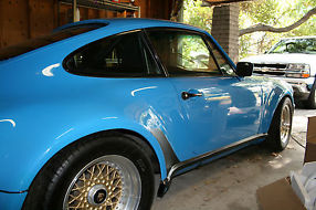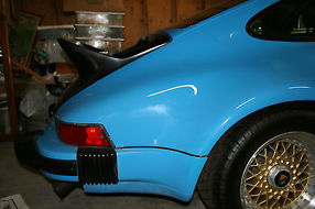Body: great 15 footer Mexico Blue paint, quality fender body work. Front turbo valance is fiberglass and has minor cracks. Slight depression in roof on passenger side, and also next to rear quarter (both seen in photos). Rust in passenger door pillar (also in pictures), and floor pan patches in steel. Brand new MA Shaw ducktail can be paint matched to the body.