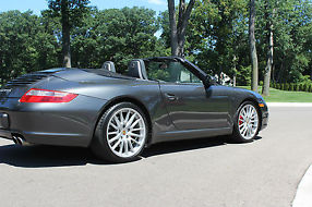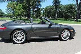 Take a look at this beautiful 2006 Porsche 911 Carrera S Cabriolet! Only 43,800 miles, mechanically perfect. Slate gray with gray leather interior and black convertible top. Carrera S package, 3.8l flat 6 cylinder engine. 6 speed manual trans w/short shift kit. Sport seats, sport chrono pkg, push button sport mode, tinted power windows, cruise control, power rear spoiler. Porsche stability control, Navigation, AM/FM/CD. Integrated phone. 19" factory rims w/Porsche crest, 19x8.5 front, 19x11 rear. Porsche crests in headrests.
