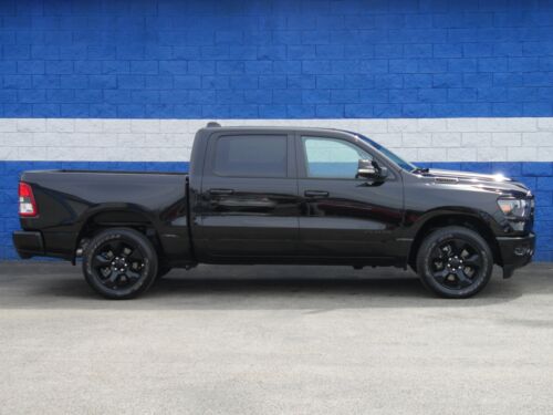 Recent Arrival! CLEAN CARFAX/NO ACCIDENTS REPORTED, ONE OWNER, REMAINDER OF FACTORY WARRANTY, BLUETOOTH, BLACK APPEARANCE PACKAGE, BIG HORN LEVEL 2 EQUIPMENT, FOUR WHEEL DRIVE, ALLOY WHEELS, SERVICED, INSPECTED, BACKUP CAMERA, REMOTE START, SIRIUS/XM SATELLITE RADIO, HEATED SEATS, TOW PACKAGE, STEERING WHEEL CONTROLS! Diamond Black 2019 Ram 1500 Big Horn/Lone Star 4WD 8-Speed Automatic HEMI 5.7L V8 Multi Displacement VVT