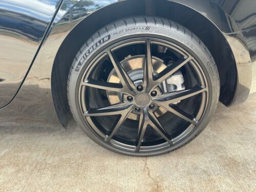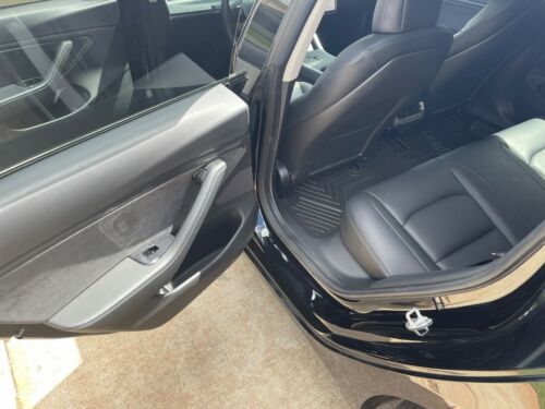 This 2018 Tesla Model 3 has been well cared for. With only 10,858 miles, new tires and wheels, black vegan leather (flawless), all weather floor mats (also has carpet mats), roof sun visors, carbon fiber spoiler and mirror covers as well as interior trim pieces. Car still has remaining Tesla warranty until December 2021. Has 1 key fob and 2 key cards. Comes with charging cable, cable adapters, cable bag, Jack pucks and bag and front license plate mount.