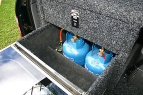 2 x 2 kg gas bottles, 30 litre stainless steel water tank & electric pump, cargo barrier & rear window protectors,