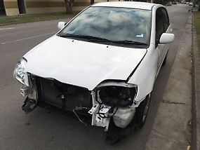 Up for auction is my 2003 Corolla auto air and steer, it has some damage to the front of the vehicle from an accident, car still starts and drives fine as I only have third party insurance they did not cover it, I was going to fix the car myself however just don't have enough time to do it so I am selling it as is. As you can see in the pics the damage is mainly to the front left of the car, the rail may need to be straightened I'm not sure, I have already bought another bonnet for the car and a headlight which it doesn't need but comes with the car. Parts needed to fix the car would be radiator, a/c condenser, rope radiator support, support bar from top support to bottom and bumper bar and reinforcement and a grille.Car is currently registered until the 23rd of March 2016, has travelled a mere 152,258kms and has a full service history as well, the interior is in very good condition as can be seen in the pictures, the rest of the body is in pretty good condition as well, has a couple of scratches her and there but it's not a new car, also comes with 3 keys would probably suit someone who knows what they are doing repair wise as it looks to be not a difficult repair, vehicle is located in Alexandria any questions can be answered by calling me on 0447 562 019 I can assist with local transport if required.