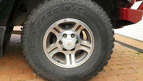 Fitted with 16 x 8 JJ, 40th Anniversary Toyota alloy wheels, with 285/75R16 M+S, Cooper Discoverer S/T tyres. All tyres have approx 10mm tread depth, with the spare having approx 15mm. The 4 wheels all show minimal gutter/rock damage, the spare unfortunately has pitting to the exposed alloy. (This is the only rim I could find after a damaged rim was shown to me).