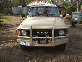 1982 TOYOTA LANDCRUISER 60 SERIES KM (442827) 5 SPEED ALLOY BULL BAR P.T.O WINCH TOW BAR GAS ONLY NEEDS FUEL PUMP 2F MOTOR NO RWC BODY HAS RUST AND SCRATCHES MOTOR HAS LOW OIL PRESSURE. USE VEHICLE TO GET FIRE WOOD.