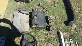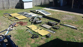 air conditioning(to be installed), rear back seat, hardtop witch includes the sides and rear barn door & roof, bash plates, original steering wheel, bumper bar, a few replacement glass windows, brand new windscreen, air boxes, 5 speed gear box, power steering, front disc brakes rear drums.