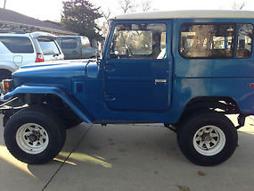 For sale is my 1974 Toyota Landcruiser FJ40. It is electric blue with black interior. The body has 89,000 miles and has had frame-off restoration. It has a rebuilt chevy 350 small block v8 engine with a Hurst automatic shifter. It has 4 wheel drive with manually locking front hubs. The engine has approximately 20,000 miles on it. The engine runs great! It comes with the white hard top with an iron roof rack with a jack, shovel and unique toyota oversized fog lights. I also have diamond plate half doors and a diamond plate tailgate when the top is off. I also have an original spare tire carrier (not installed) that I will also include in the sale. It is missing the headliner on the inside which can easel be replaced. This FJ40 is not showroom quality, but is in very good shape and is a blast to drive! Sorry to see it go but I'm relocating out of state.