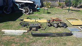 air conditioning(to be installed), rear back seat, hardtop witch includes the sides and rear barn door & roof, bash plates, original steering wheel, bumper bar, a few replacement glass windows, brand new windscreen, air boxes, 5 speed gear box, power steering, front disc brakes rear drums.