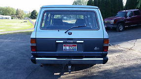 Hood has a few rust patches along with corner behind the rear tires. The interior is in good shape with two cracks on the dash. Seats are in good condition. Comes with a storage container for the back. Never been smoked in. Powertrain has been serviced regularly and has had a tune-up and starter installed in the last 1000 miles. 4-wheel drive works. Transmission shifts solid. Air conditioning blows cold. Has an aftermarket Clarion CD player. The windshield has a small chip but otherwise all windows are great. All power windows, locks and mirrors work. Oil pressure gauge quit working a while ago. The wheels have very minimal pits in the seam. The engine has a small leak somewhere. No major dents, just little dings and scratches.