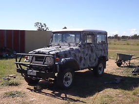 1973 FJ 40 Toyota landcrusier, currently registered until 17 sept 2014, recently had all new rings and bearing so natch all matching gaskets including head, also new water pump & speedo cable Has a 2 inch lift kit as shown, springs are only a couple of years old, will climb anything in low gear. was going to unbolt roof & do convertible, but have other bills & another 4x4, so short auction, needs a little work to make pretty, new handbrake pad & a mirror. last of the all steel 40's, no vinyl trim inside except roof, all steel dash and doors.truck for a man's man. lift off roof,get roll bar, cut down doors, some fatties you are there (forget tarting inside if ya love the Mud)some small panel rust spots showing, none structurally,
