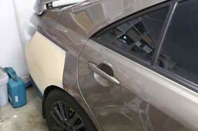 Bumper is liquid wrapped in camo green, wrap is removable and can take car back to factory brown