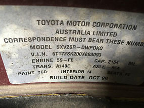 1998 TOYOTA CAMRY SXV20R CSI. Factory installed alarm system. Minor body damages but works good. Always working perfect, never gave any trouble, only done genuine 171,000 Kms. 6 month Rego remain. Owned by a plaster, very reliable tool car. Upgrade to an HIACE van, that why gonna sell this car.