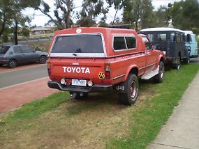 Hilux 4x4,2.0 lit petrol engine,very economical,always serviced every 5000km,dual recaro seats,mp3 Cd with two big speakers,,tinted windows all around,dash and floor new mat,sports red timber steering,bull bar,tow bar,5 driving huge lights,2 rear white lights,3 antennas,mudflaps,new rear muffler,carpeted canopy area L 2200x W1600x H950,comfortable sleeping for two(backpackers ,hunting,fishing,tradies !!)All terrains tires,checker plate side steps ,etc.No power steering,but easy to set,so many accessories extra for old school hilux,18R model(On Wikipedia said,best ever made toyota engine,can run 1 mil km)