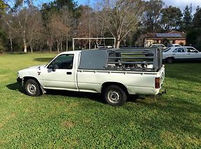 This ute is mechanically sound and was formerly the work car of a diesel mechanic in Bulla, Victoria. The engine pulls well with loads of torque and is as smooth as you'd find on a Hilux of this vintage. The car stops and starts perfectly, has good brakes, reasonable tyres and has been 100% reliable in the six months I have driven it. I flew down to Melbourne and drove it back to Sydney without a moment's worry. C. 380,000km on the clock.