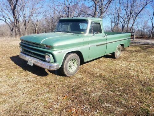 66 c10 long bed it has 6 cylinder and 3 speed floor shift it runs and drives has 1 brake thats sticky. Paint looks good but when you get up close you can see flaws. When it was painted something got in the paint it looks like to