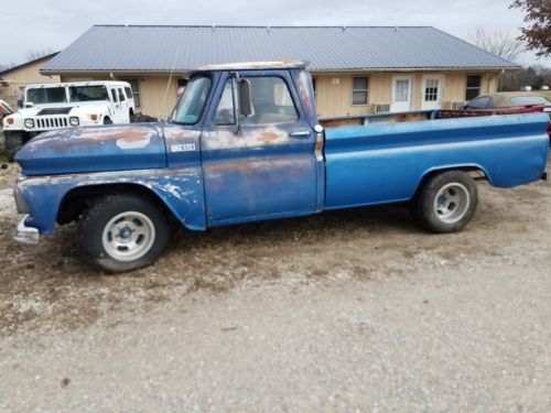 selling a 1965 chevy c10 pickup truck,95% rust free, 350 / four barrel, 3/4 cam , 4 speed.. new radiator.. plus ,,,, deep slotted wheels,,.no time to continue restoring .been parked,. all glass perfect. breaks need bled .for more
