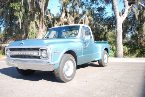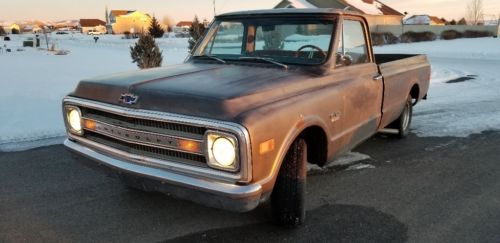 1969 Chevy C10. 350 V8, freshly rebuilt 700R4 auto tranny. Headers. Lokar shifter. Fuel tank relocated to rear. Original wood bed. Runs great, has been a daily driver for the last few months. Lots of new stuff, lots of old stuff.
