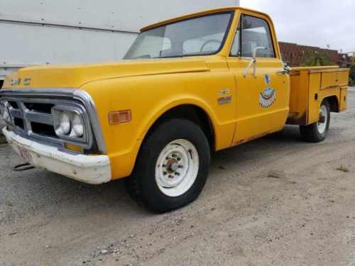 You are bidding on a 1971 Gmc C10 C20 service truck. Truck was used originally on a Indian reservation. Very solid for age. Make a killer shop truck. No motor or trans. Truck has rare saddle style service bed(most service beds sit