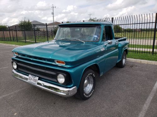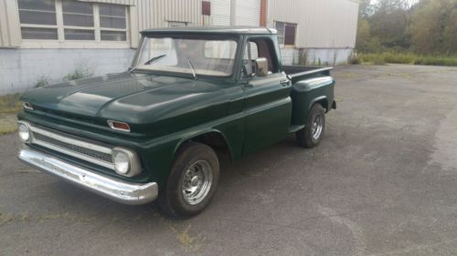 1966 Chevrolet C10 Pickup-Step side. 6 cylinder, 3 on the tree. Runs, drives and shifts great. 6 Lug drum brakes. Interior like new. Seat recently recovered. No rust in door bottoms, cab corners nor rockers. A couple of bub