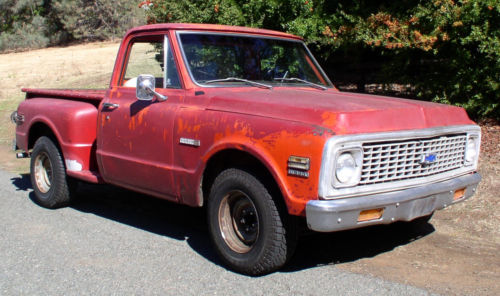 Offered is a solid 1972 Chevy Cheyenne C-10 short bed stepside truck, with factory AC and nice dual exhaust. The truck has spent it's entire life in Northern California and is currently registered, with a clear California title.