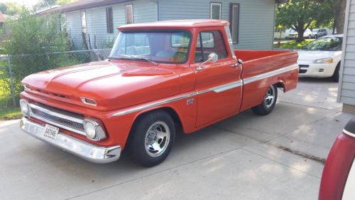 1966 Chevy C10, SWB 2wd, hugger orange, 350 engine, turbo 350 trans, Camaro rear end, power steering, front disc brakes, five lug wheels, Lokar shifter, new aluminum radiator, new Holley carb, headers, 3" exhaust, stereo, nice pa