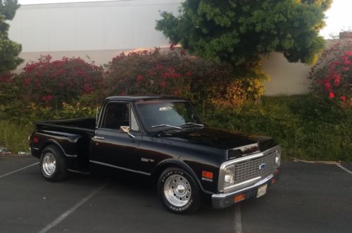 Hello , selling this bad ass 1971 Chevy truck for a friend, here you have the details:short bed step side.it has a beautiful black paint that shines like a mirror, and black interior it was restored approx. 7 or 8 years ago