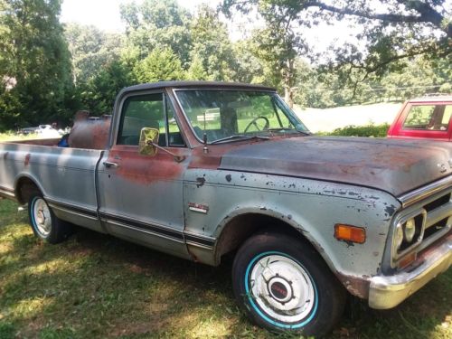 uo for sale is a unique 1969 GMC Longbed c10 with an AC cab, PS, PB, and a host of new parts installed. This truck is still wearing its original Silver Poly paint and even has a cool dealer installed option: a faux vinyl cab top (