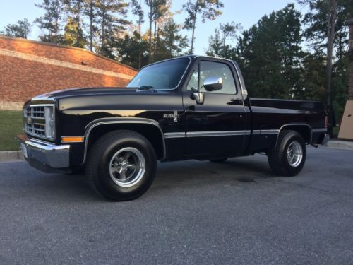 UP FOR AUCTION IS MY 1986 CHEVROLET SILVERADO C10 2WD BLACK EXTERIOR CHARCOAL INTERIOR.. IT HAS ONE REPAINT ABOUT 5 YEARS AGO. PAINT IS NICE AND SHINY WITH GOOD BODY GAPS AND LINES. NO RUST IN THIS TRUCK. DOOR JAMBS WERE NOT REPAI