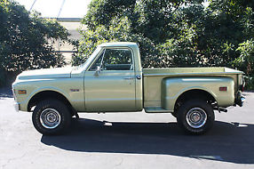 Very Rare Original 1972 GMC K10 Short Bed, Step Side, 4x4, 4 Speed, Sierra Grande. Paint is about a year old and shines really nice. Original color was red orange changed to avocado green. The original paint color is still visible
