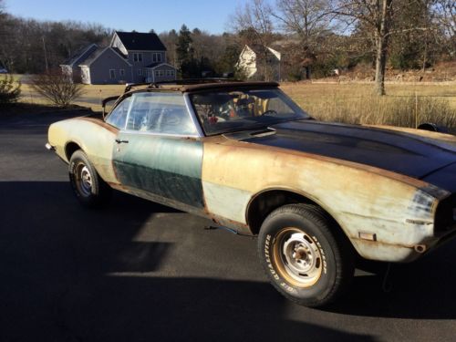 1968 Camaro Convertible original British green and has a manual top, factory 4 speed, cowl induction hood, 14 inch corvette rally wheels.Both convertibles have solid rockers and frame rails.1968 Firebird Convertible original red o