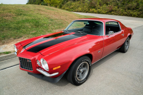 This' 70 Camaro has a 350 C.I. (360 HP) V8 , 4 Speed Manual , 12 Bolt Rear w/ 3.73:1 Ratio, Correct Cranberry Red Exterior, Correct Black Bucket Seat Interior, True Z/28 w/ RS Appearance Package, Photo Documented Restoration by F
