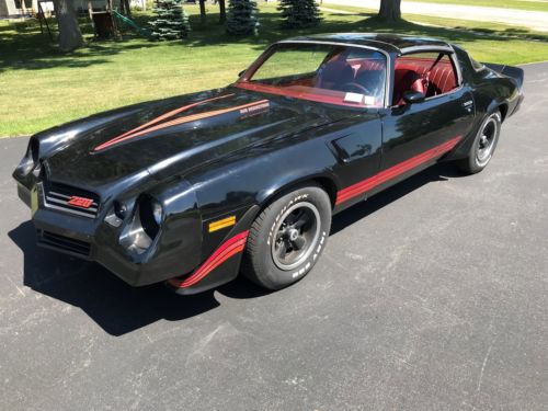 1980 Z28 4 speed V8 with T Tops. Speed machine rebuilt engine. Total muscle! Mileage unknown. Clean carpet and shiny black leather interior. Blue exterior with ghost flames. Contact me for any questions. This is ready for you to