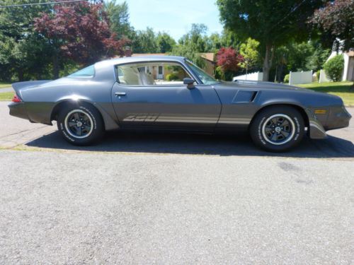 1980 Chevy Camaro Z28. Factory black on black. 113K original miles. Painted Satin Black. No rust. Original 350 with Edlebrock Enduroshine intake, Edlebrock Enduroshine 650 carb. Edlebrock fuel pump. Aluminum Camaro valve covers, H
