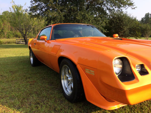 1979 "REAL" Z28. VIN CODE Q. RESTORED ABOUT 10 YEARS AGO. PAINT IS "HOUSE OF KOLOR, TANGELO ORANGE". STILL SHOWS REALLY NICE. CUSTOM INTERIOR, COMP GEN VI ROLLER CAM, TURBO TRANS, JVC SOUND SYSTEM. COLD A/C. CAR IN GREAT CONDI