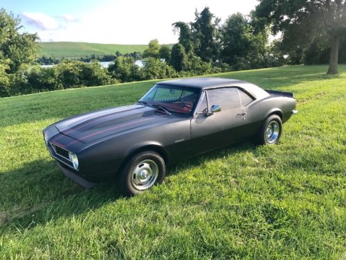 1967 Chevy Camaro. Matte Black with Red Vinyl Interior. Was originally a 6cyl, 4 speed manual trans car. Here are some specs: 355World product headsFrame connectors4.11 gearAllot axlesComp cam 480 lift350 turbo transThe odometer s