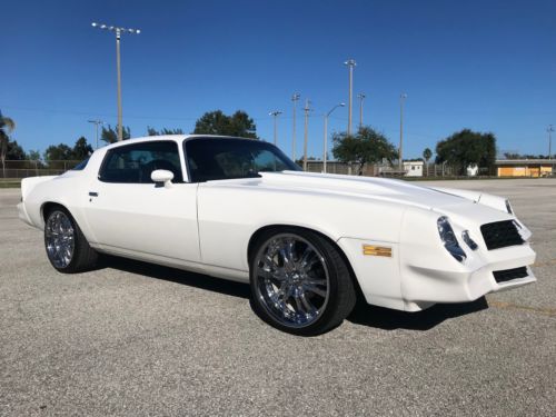 This is a must see almost 100% percent restored 1979 Camarorebuilt 350 k block engine, 202 fuel camel back hump heads, roller rockers, tall edlebrock valve covers, edelbrock intake, 650 edlebrock carb. 350 turbo transmission (jus