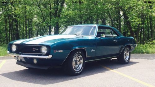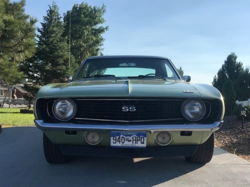 1969 Chevrolet Camaro SS with numbers matching 350 engine and body, 3 speed transmission and 10 bolt rear end. Original and rust free lime 59 exterior with matching original lime 59 interior, very rare combination. Driver seat has