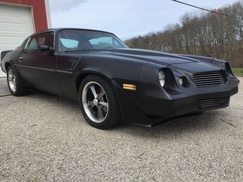 1980 Chevy Camaro Z28. Factory black on black. 112K original miles. Painted Satin Black. No rust. Original 350 with Edlebrock Enduroshine intake, Edlebrock Enduroshine 650 carb. Edle brock fuel pump. Aluminum Camaro valve covers,