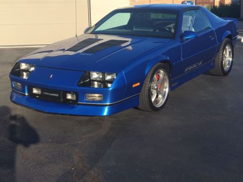 1987 CHEVY CAMARO IROC Z STREET MACHINE. LETS START WITH THE OUTSIDETHREE YOUR OLD ELECTRIC BLUE PAINT SHOW CAR FINISH WITH NEW DECALS.GLASS IS NICE EXCEPT FOR ON LITTLE SCRATCH ON PASSENGER T TOP AND ONE ONBACK HATCH VERY MINOR