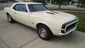 Beautiful First Generation/First Year Chevrolet Camaro RS/SS 350 CI 4-speed. Rare1967 Camaro RS/SS, Butternut Yellow exterior with Bumble Bee Stripe atthe nose and hideaway headlights. Black interior with bucket seats andconsole