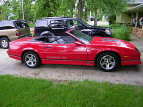 1989 IROC Z CAMARO CONVERTIBLE-RED WITH BLACK TOP. GREY INTERIOR. NEW PIONEER SOUND SYSTEM. ORIGINAL SOUND SYSTEM IN STORAGE. EXCELLENT CONDITION. 35,000 ORIGINAL MILES. RUNS GREAT. CC, AC, LIMITED SLIP, PW, PB, PM, ALARM, POWER T