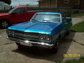 Up for bid we have a deep blue 1965 El Camino show truck ,this truck has taken many awards at local car showsit has a 283 v8 eng. with a mild rv cam alum manifold eld. 4 bal. carb dress up kit on eng. custom steering wheel , ma