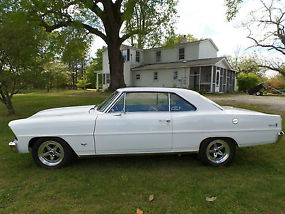 For sale - a very nice 1967 Chevy II Nova, two door, hardtop, rotisserie restored in 2013. The car was painted PPG polar white and clear coated, then buffed to a slick, smooth finish. The factory style blue interior was redone