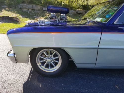 66 nova pro street professional build, 355,with a bds 871 supercharger, th350 reverse valve body, 3000 stall converter, dyna rear end, big Mickey thompsons on the back, coil over in the back, mustang 11 front suspension, auto