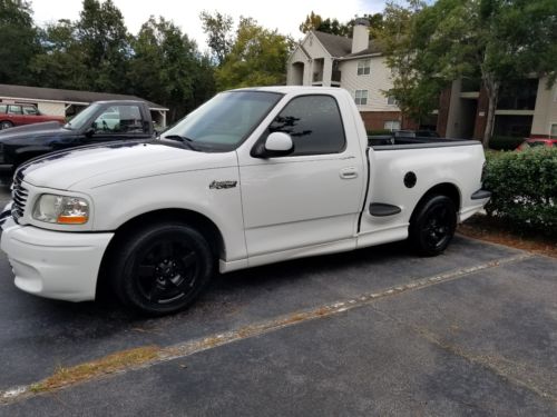 2001 Ford F-150 SVT Lightning Rare White with custom blue painted cobra stripes, only 115,587 miles,auto, a/c, leather, power windows, power locks, tilt, cruise, alloy wheels painted black, sliding rear window, bedliner, fully loa