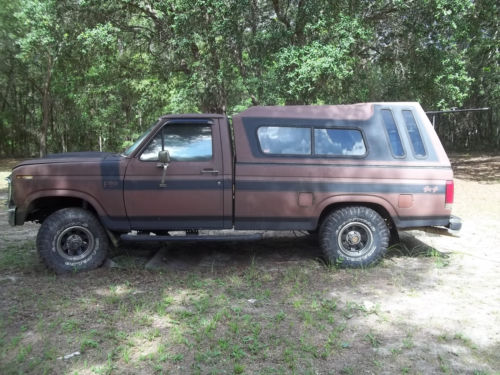 A MECHANICS DREAM THIS IS A 1986 FORD F-150 4X4 NEEDS TRANSMISSION HAS 5.0L 302 FUEL INJECTED (EFI) WITH SHORTY HEADERS AND DUAL EXHAUST HAS COMPLETE NEW BRAKE SYSTEM ON IT NEW EMERGENCY BRAKE CABLES HAS 33X12.50X15 BAJA TIRES ON