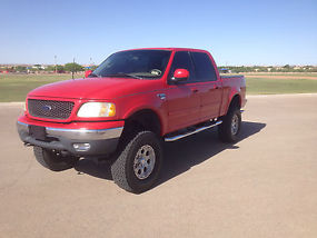 For sell is a red 2003 Ford F-150 4x4 Lariat Super-crew Cab V8 5.4 fx4 with 206miles. The Truck comes equipped with; Pacer wheels, off-road BF tires, six inch suspension lift, Rancho RS5000 shocks, and skid plate. Leather interior