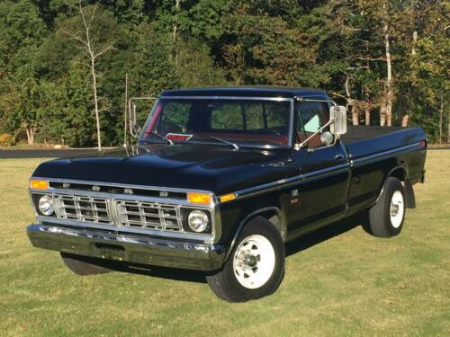 For Sale!!! 1976 Ford F-250 2wd 390 cu. in. 4 speed w/granny gear new carpet. Beautiful Black paint with Red interior, New Chrome rear step bumper , new tires, new tail lights with trim, new seat belts, new brake light switch and
