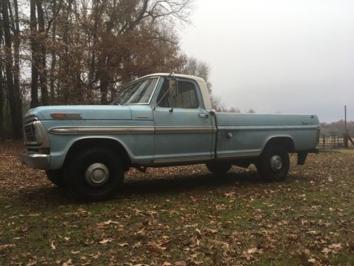 UP FOR SALE IS A 1972 F250. WAS USED AS A FARM TRUCK. ITS IN PRETTY GOOD CONDITION. HAS VERY LITTLE RUST (SEE PICS). HAS A 390 WITH A 4 SPEED. IF YOU HAVE ANY OTHER QUESTONS FEEL FREE TO ASK. SEE PICS FOR CONDITION. BUYER IS RESPO