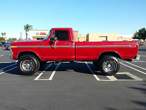 UP FOR AUCTION IS A VERY UNIQUE AND CLEAN 1977 FORD F-250 HI BOY, 460 BIG BLOCK BORED 40 OVER, 750 HOLLY CARBURATOR, 11:1 COMPRESSION, HARLAN SHARPS ROLLER ROCKERS AND RHOADES LIFTERS. C6 AUTOMMATIC TRANSMISSION WITH NP 205 TRANSF